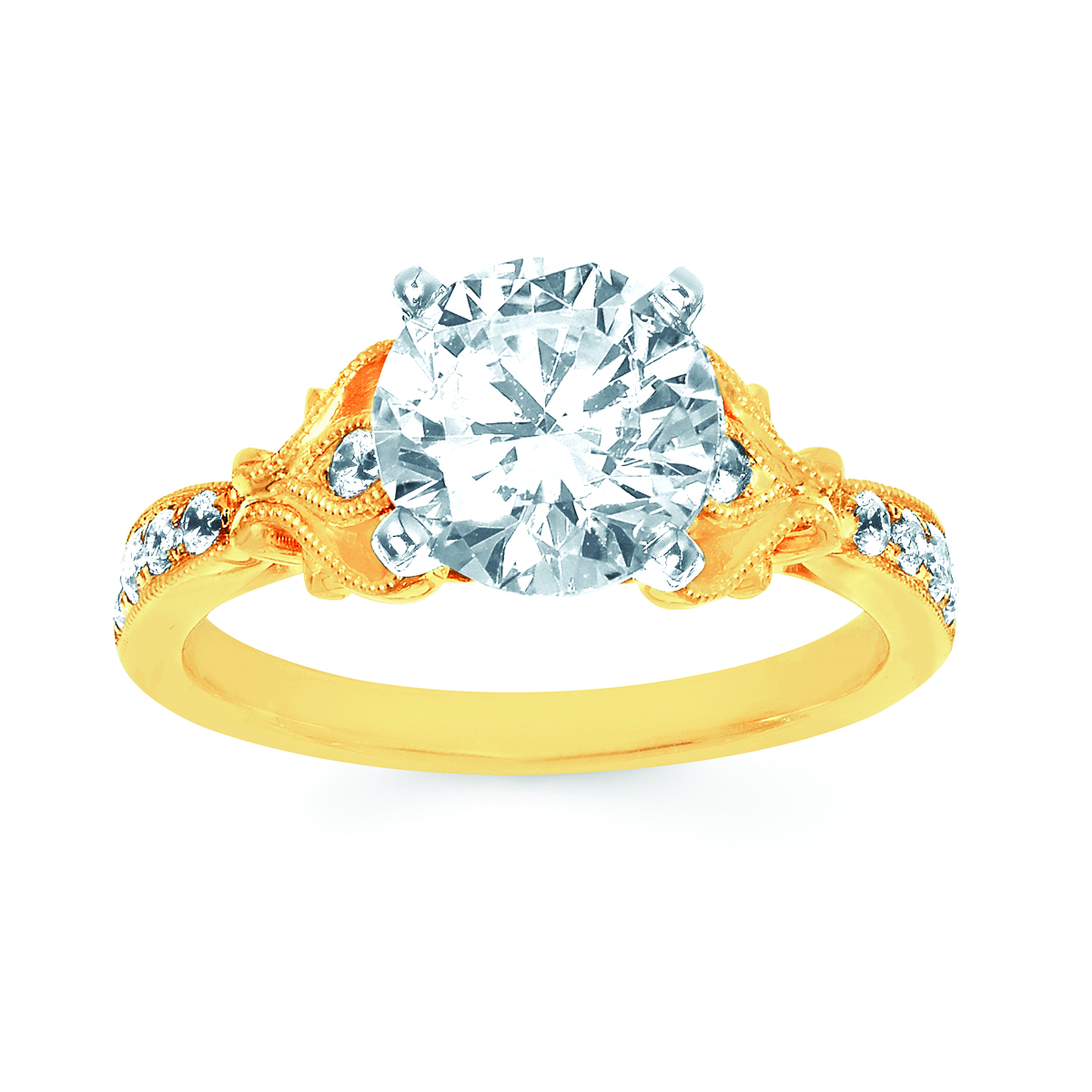 Engagement Ring Forever ElegantĀ® 1/5 Ctw. Diamond Semi Mount shown with 2 Ct. Round Center Diamond in 14K Gold
