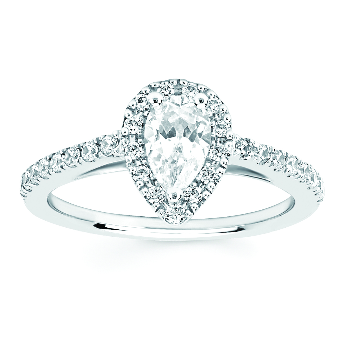 Engagement Ring Halo Bridal: 1/3 Ctw. Diamond Halo Semi Mount available for 1/2 Ct. Pear Shaped Center Diamond in 14K Gold