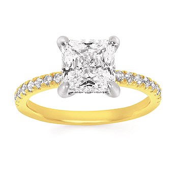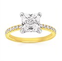 Classic Bridal: Hidden Halo, Diamond Shank 1/3Ctw. Diamond Semi Mount Shown With 2 Ct. Princess Center Diamond In 14K Gold