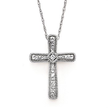 .01 Ctw. Diamond Scroll Cross Pendant With Millgrain Detail In 14K Gold With 18" Chain