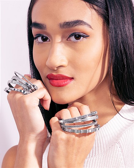 1/2 Ctw. Diamond Bangle Bracelet In Sterling Silver With 10Kt Clasp